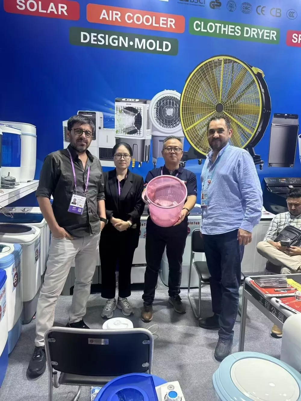Bakit ang mga produkto ng kumpanya ay nakakaakit sa mga mamimili sa ibang bansa tulad ni Neil Plessis sa unang tingin? "Itomga washing machineatmga air cooler, na tila hindi kapansin-pansin sa unang sulyap, aktwal na naglalaman ng maraming mga talino sa disenyo ng koponan," paliwanag ni Alfa, ang pangkalahatang tagapamahala ng kumpanya. Ang pagkuha ng isang mini washing machine sa display bilang isang halimbawa, ipinakilala niya: "Ang washing machine na ito ay maaaring mukhang maliit, ngunit ito ay may malakas na kapangyarihan at madaling dalhin sa panahon ng mga biyahe. Bukod dito, maaari itong isa-isa na nakabalot sa panahon ng transportasyon, na nakakatipid ng espasyo. Higit pa sa washing machine, ang air cooler ay portable din, na angkop para sa maraming mga sitwasyon, na may kakayahang mabilis na paglamig, at tahimik na gumagana sa mababang paggamit ng kuryente. Bagama't nakasali kami sa maraming mga eksibisyon sa loob at labas ng bansa, sa tingin ko pa rin ang Canton Fair sa mismong pintuan namin ang pinakamaganda!"